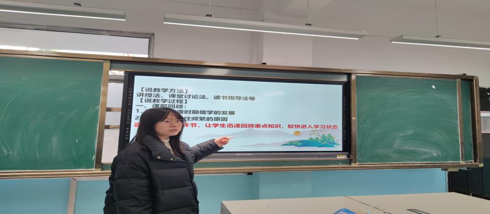 首先是说课环节。于露老师针对《两宋的政治和军事》进行了精彩的说课,整堂课从前情回顾、导入到新课讲授、合作探究再到限时训练,充分彰显了一位年轻老师的活力风采;紧凑的课堂环节设置,丰富有效的评价方式都展示了驾驭历史学科生本课堂的熟练教学技能。