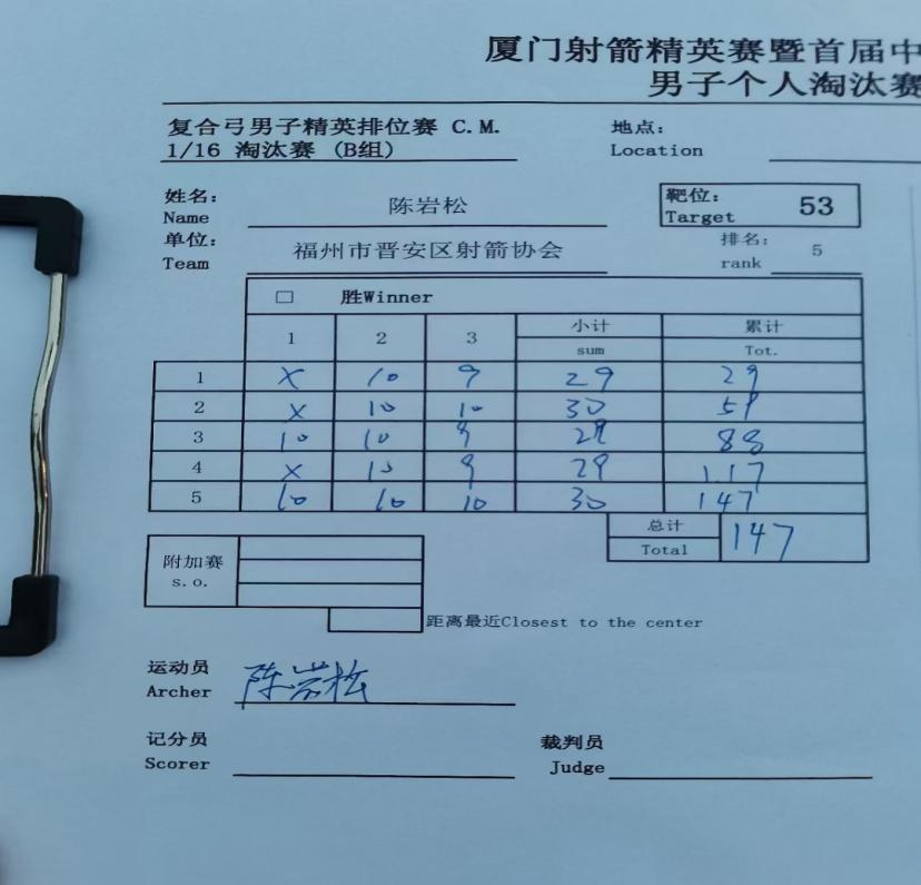 我校陈岩松同学在厦门射箭精英赛中荣获亚军!