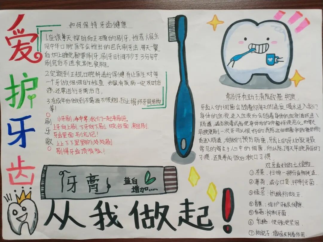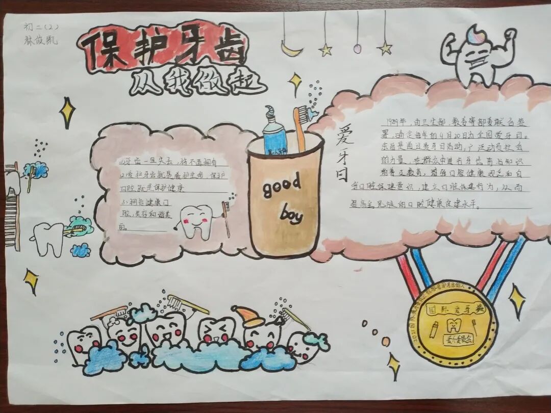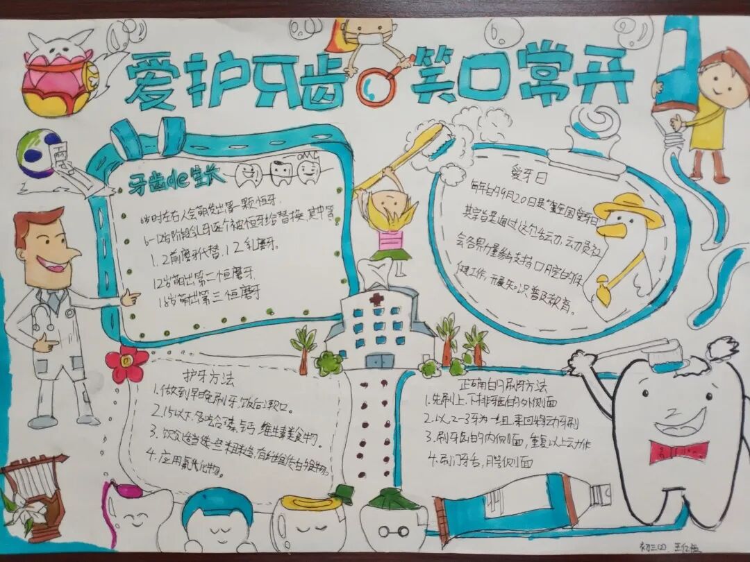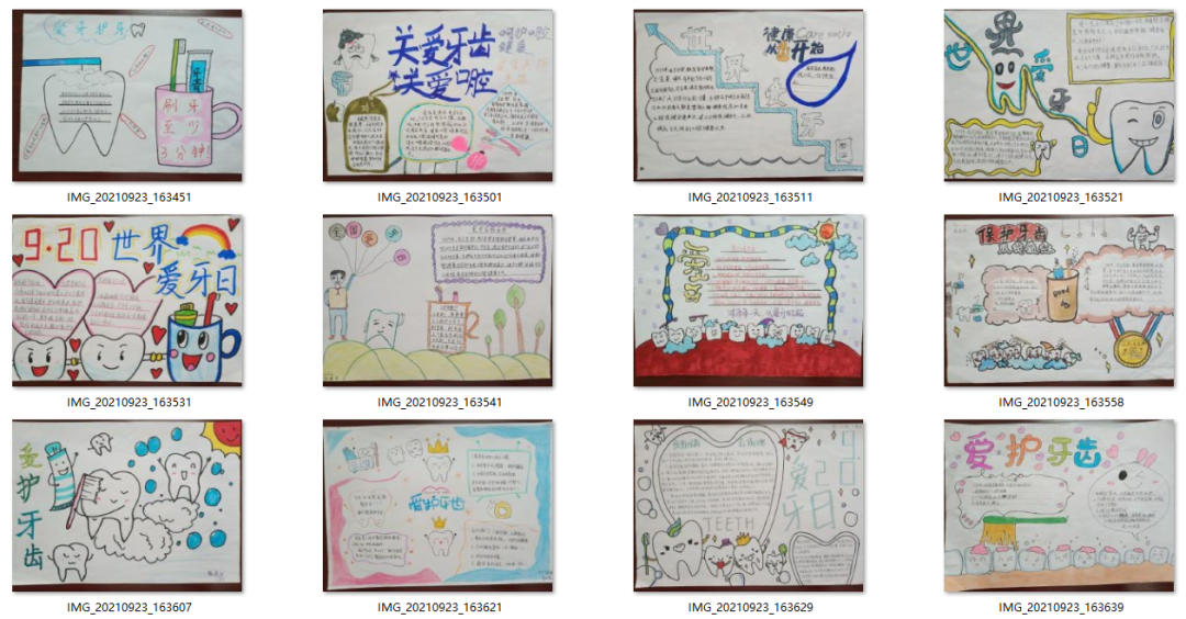 了解了口腔健康的重要性,明确了今后生活中的爱牙护牙使命,同学们利用中秋假期,精心制作了一张张手抄报,精美的设计,巧妙的构思,体现出团员、队员的专心和创意,让“健康牙齿”的理念深入人心。