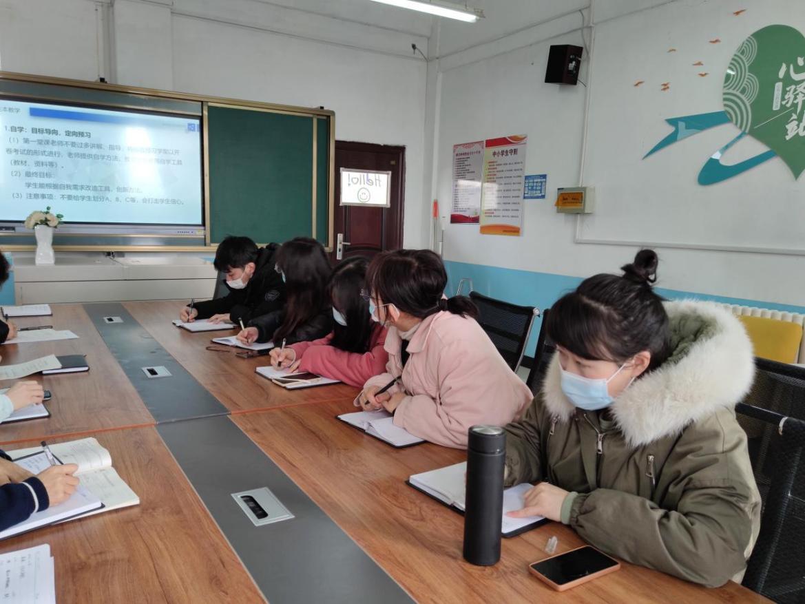然后,教研组长传达了姚校长会议讲话精神,让自学、互学、助学、固学的操作深入人心,深化讲解了从课前预习的前置学案到巩固复习的经典回眸,同时讨论了如何在保证课堂进度的前提下,提高学生学习的效率的措施。