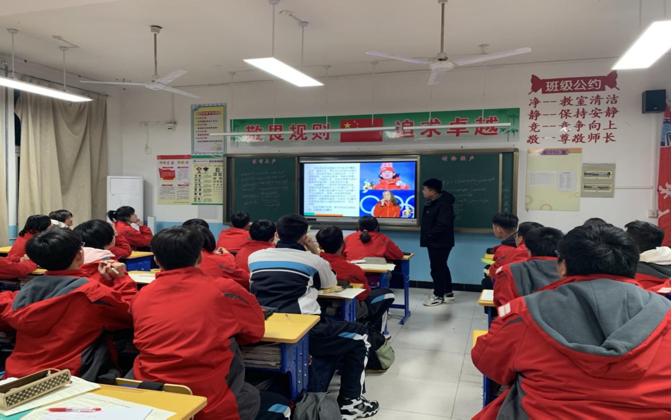 此外,老师们还与同学们共叙了北京冬奥会的精彩瞬间。17岁的苏翊鸣、18岁的谷爱凌,用他们神勇的表现、开放的心态,向全世界展示着中国青年热情开朗、包容进取的形象。他们身上的优秀精神品质,自我挑战和战胜困难的信念也使同学们受到了一次精神的洗礼。