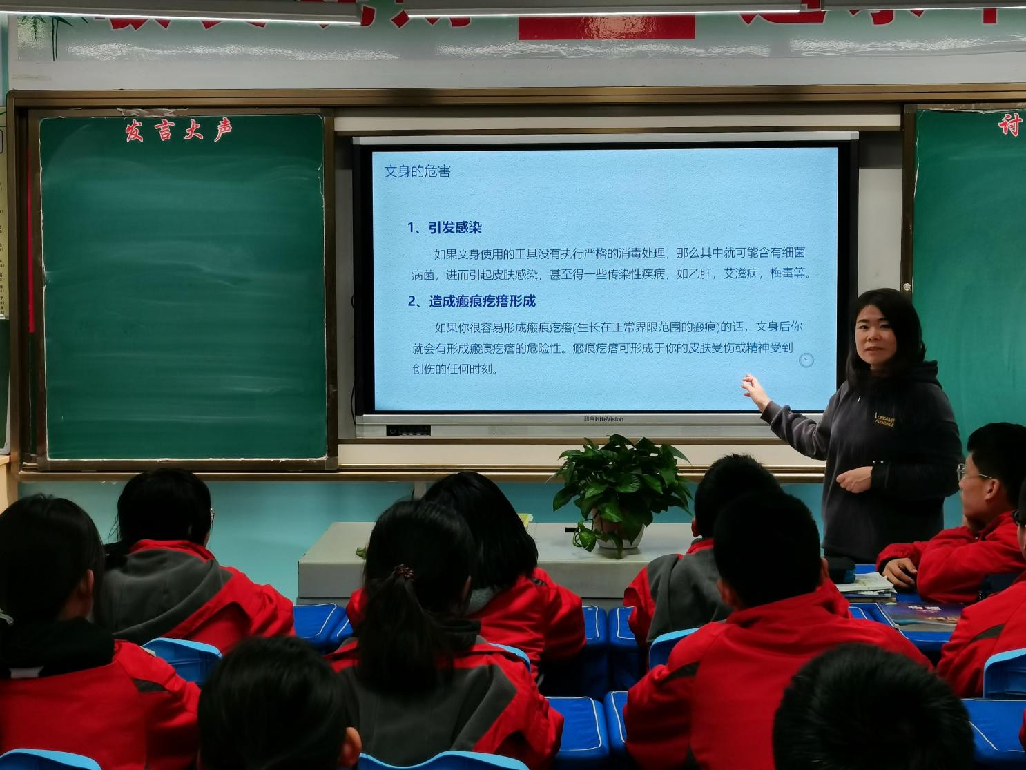 拒绝文身,从我做起。此次主题教育活动,进一步教育和帮助未成年人树立和践行社会主义核心价值观,提高同学们对文身危害性的认识,增强了自我保护意识,理性拒绝文身。青少年蕴含着推动社会进步的无穷力量,志当存高远,作为新时代的学子更应把人生理想融入到国家建设中,为实现中华民族伟大复兴而努力奋斗!